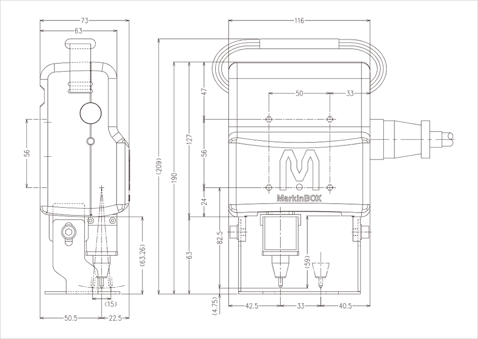 | Área de marcação | Eixo X 33 mm (1,3 ") x eixo Y 15 mm (0,6") |