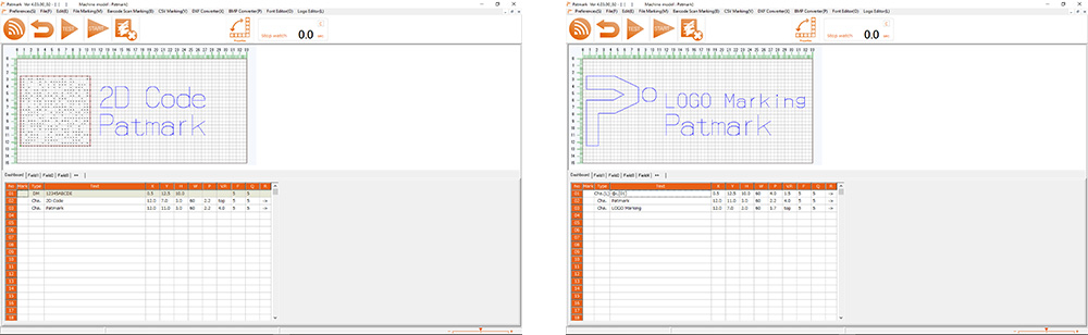 | PM Win Software | Várias linhas disponíveis dentro da área de marcação | ||